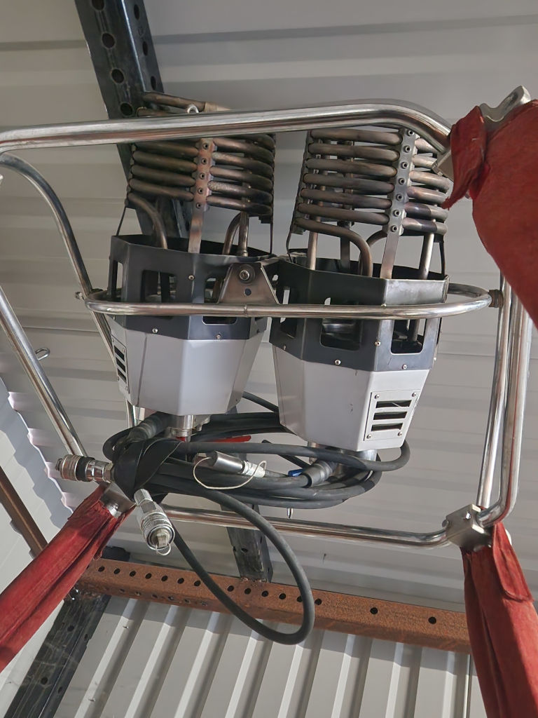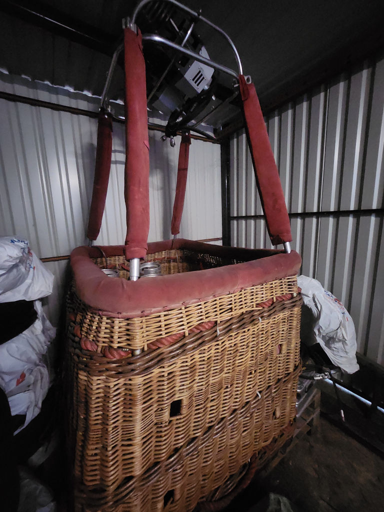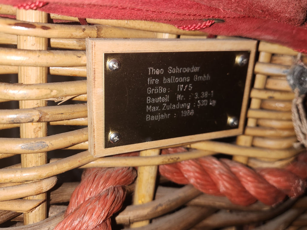Schroeder IV/5 basket, built 1988, 700 flights, 800 hrs. Red suede top rim, cushion floor, fire extinguisher, fire blanket, drop line. Schroeder FB6 double burner, built 1997, 464 hrs. Vapour pilot lights, TEMA fittings, hoses dated 07/2017.