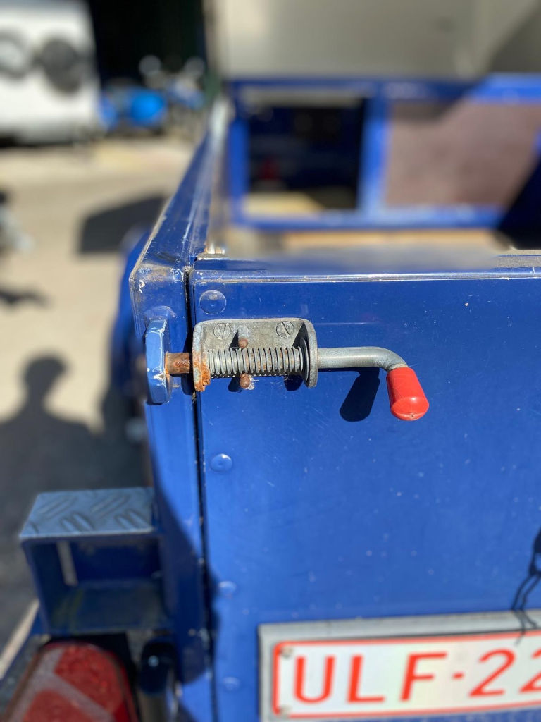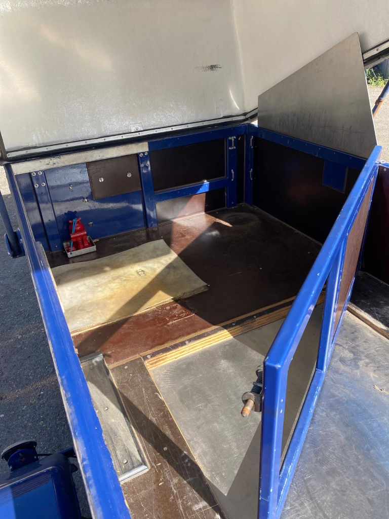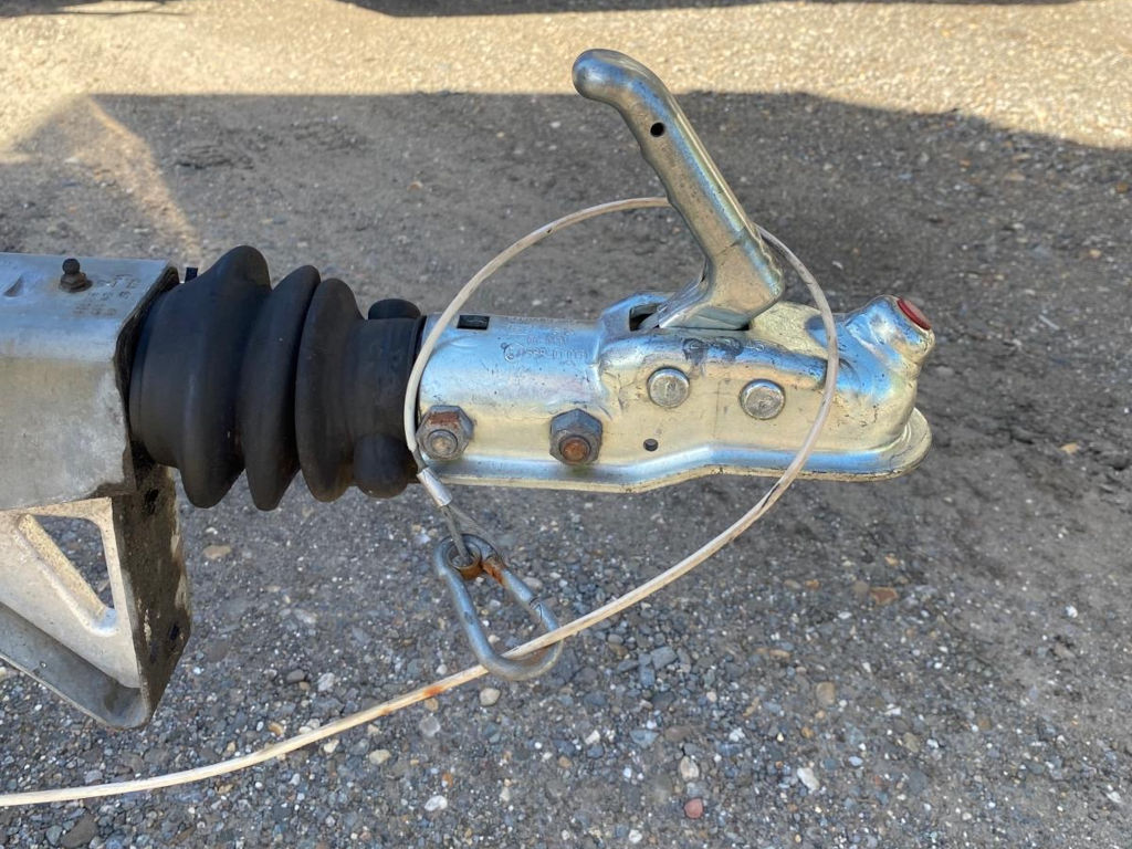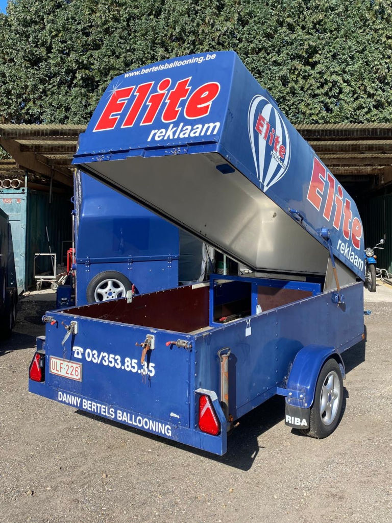 Riba 3.0m tandem axle trailer, built 1997, inside dimensions 2.95m x 1.35m. Original Westfalia polyester hood, new LED lighting. Max total weight 1350 kg. Reinforced structure, fan mount, extra door on inside to separate envelope and basket.