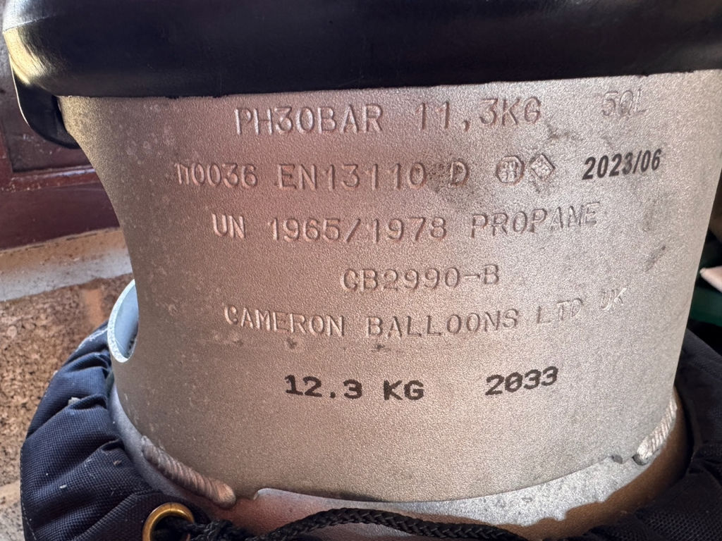 G-CJRK, Cameron Z-31, built 2017, 70 flights, 50:10 hrs flown, 0:50 hrs tethered. Superlight fabric, weight 32 kgs. Artwork can stay. Cameron Millennium hopper bottom end, built 2017, 70 flights, 50:10 hrs. Folding seat frame, black finish. Liquid pilot light, REGO fitting, hoses dated 04/2017. With 35m drop line. Cameron Alugas cylinder, built 2023, 13 flights, 8 hrs. Slave, REGO fitting, black cover, PRV/PPT/INT valid until 06/2033. 2.1 HP inflation fan, built 2017, stainless steel frame, 6-blade propeller. ARC valid until 19/06/2026.